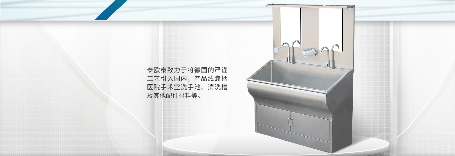 公司主要產(chǎn)品有:醫(yī)用級(jí)SUS304不銹鋼洗手池、器械清洗槽、工作臺(tái)、不銹鋼柜子、不銹鋼水槽、不銹鋼墻架以及其他客戶(hù)定制金屬產(chǎn)品。